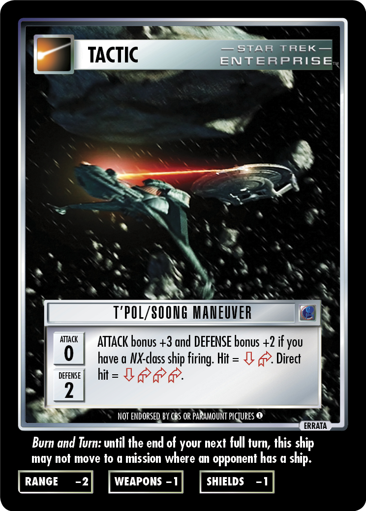 Burn and Turn: until the end of your next full turn, this ship may not move to a mission where an opponent has a ship.