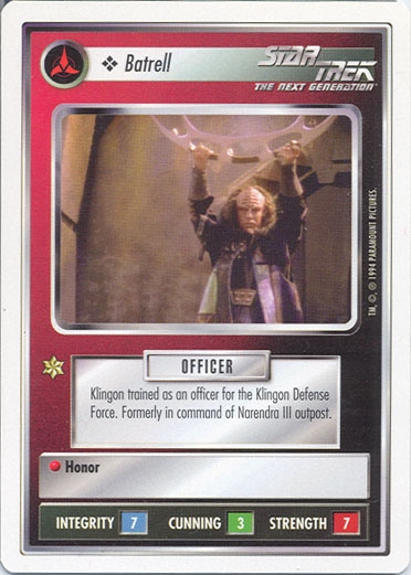 These openCards members have "Batrell" either as "Have" or as "Want" in thier ST1E tradelist. To intitiate a trade, send a openCards "private Message" with your offer to a member on this list (click on "PM" behind the members name).