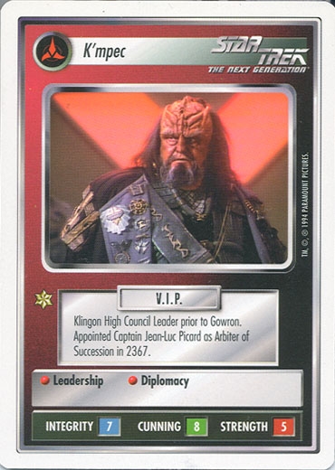 These openCards members have "K'mpec" either as "Have" or as "Want" in thier ST1E tradelist. To intitiate a trade, send a openCards "private Message" with your offer to a member on this list (click on "PM" behind the members name).