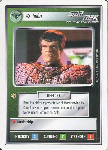 These openCards members have "Tallus" either as "Have" or as "Want" in thier ST1E tradelist. To intitiate a trade, send a openCards "private Message" with your offer to a member on this list (click on "PM" behind the members name).