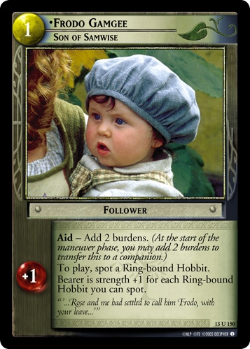 Tradelists containing "Frodo Gamgee, Son of Samwise" (LotR 13 U 150)