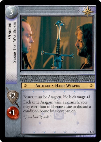 Tradelists containing "Anduril, Sword That Was Broken" (LotR 17 RF 5)